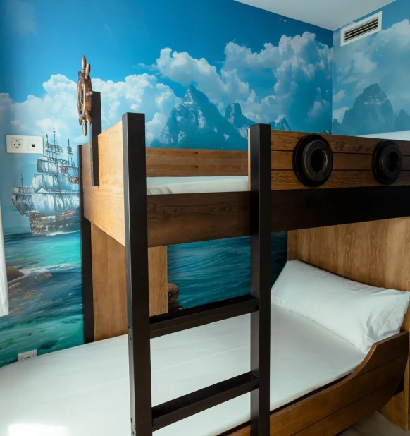 Una experiencia única que combina emoción y relajación en la exclusiva zona de Battleship Lagoon. Sumérgete en el espíritu pirata en esta encantadora cabaña, construida con madera y caña para crear un ambiente cálido y auténtico. Inspirada en la vida de los corsarios, su cuidada decoración en tonos envolventes y detalles náuticos evocan la esencia de un imponente galeón. Diseñada para tu máximo confort, cuenta con todo lo necesario para que solo te preocupes de disfrutar la aventura.